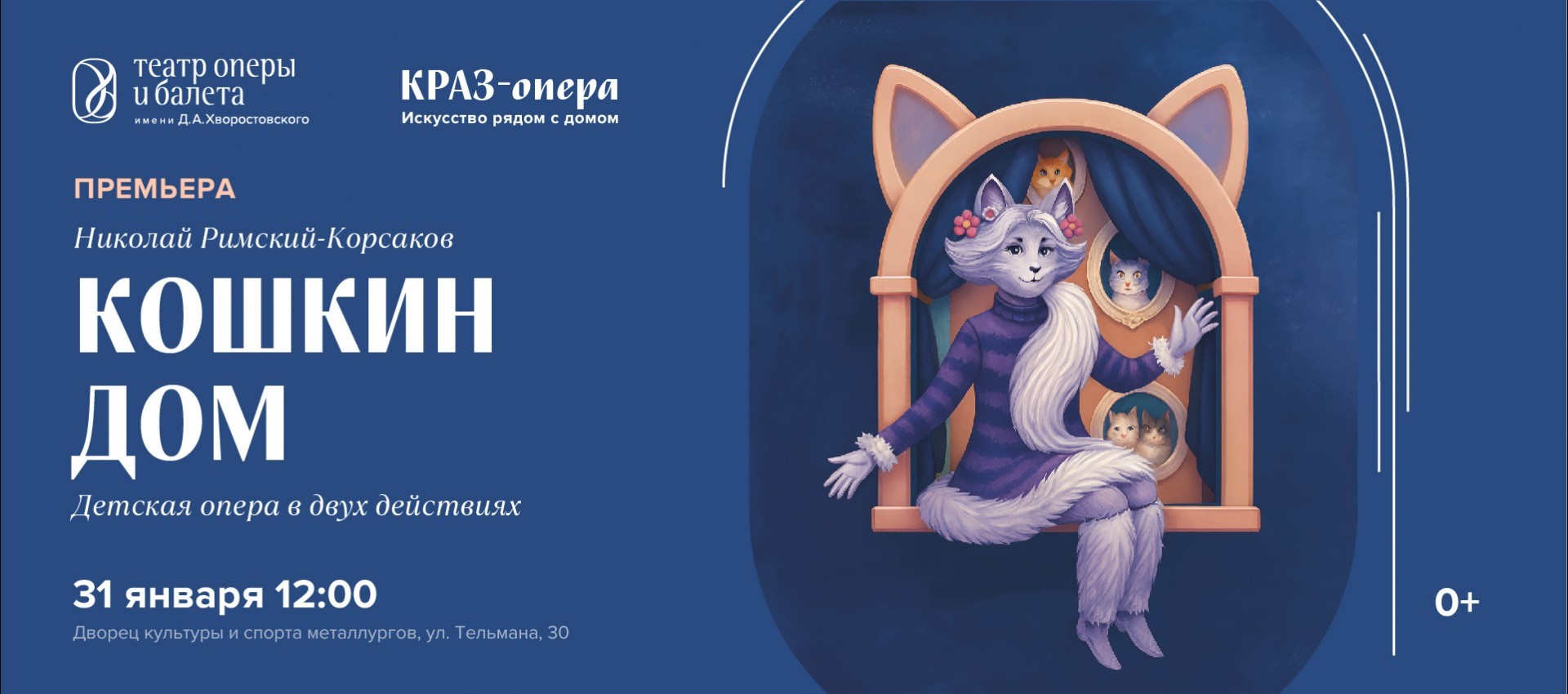 НовостиНа новой площадке Красноярского театра оперы и балета имени Д. А. Хворостовского, которая получила название «КРАЗ-опера», состоится премьера спектакля для семейного просмотра – детской оперы «Кошкин дом» на музыку Александра Кулыгина.