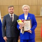 Председатель правительства Красноярского края Алексей Медведев вручил Ирине Лычагиной диплом лауреата Государственной премии Красноярского края в области оперного искусства, Георгию Болсуновскому – знак и удостоверение заслуженного артиста Красноярского края.